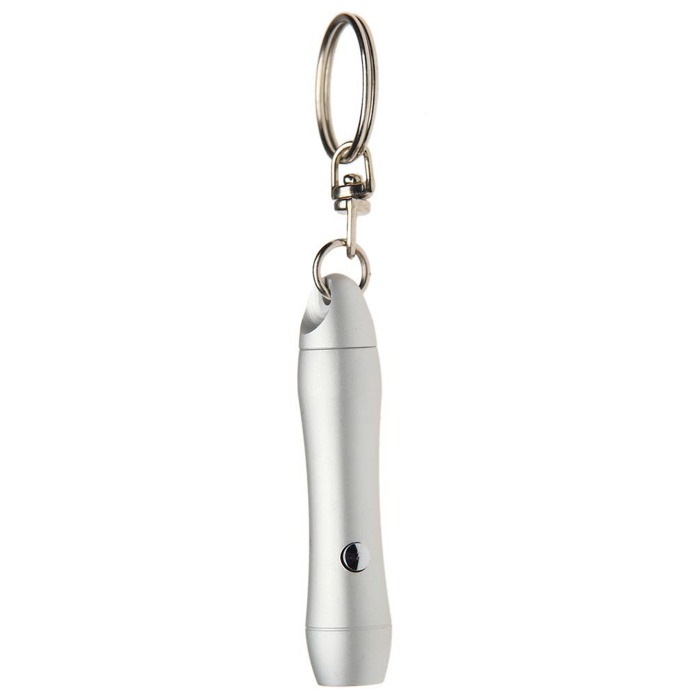 Metal keychain flashlight. The body is made of aluminum. Equipped with a metal key ring.