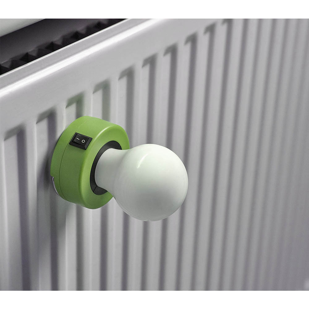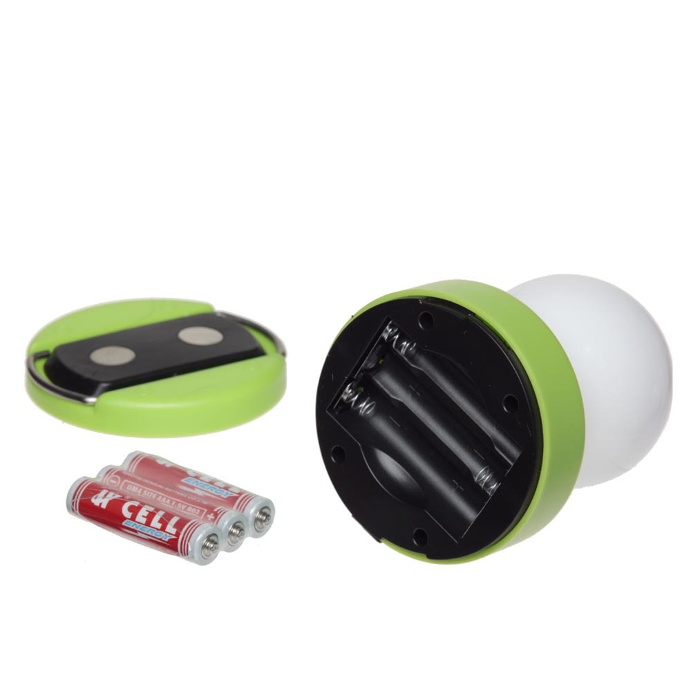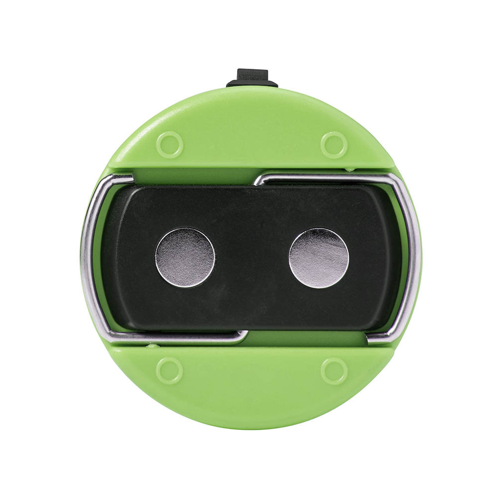 Lamp made of ABS plastic with a built-in magnet and a metal carabiner. Thanks to the magnet, the lamp is attached to any metal surface, the carabiner is convenient for hanging on any suitable object. It has an on/off button.