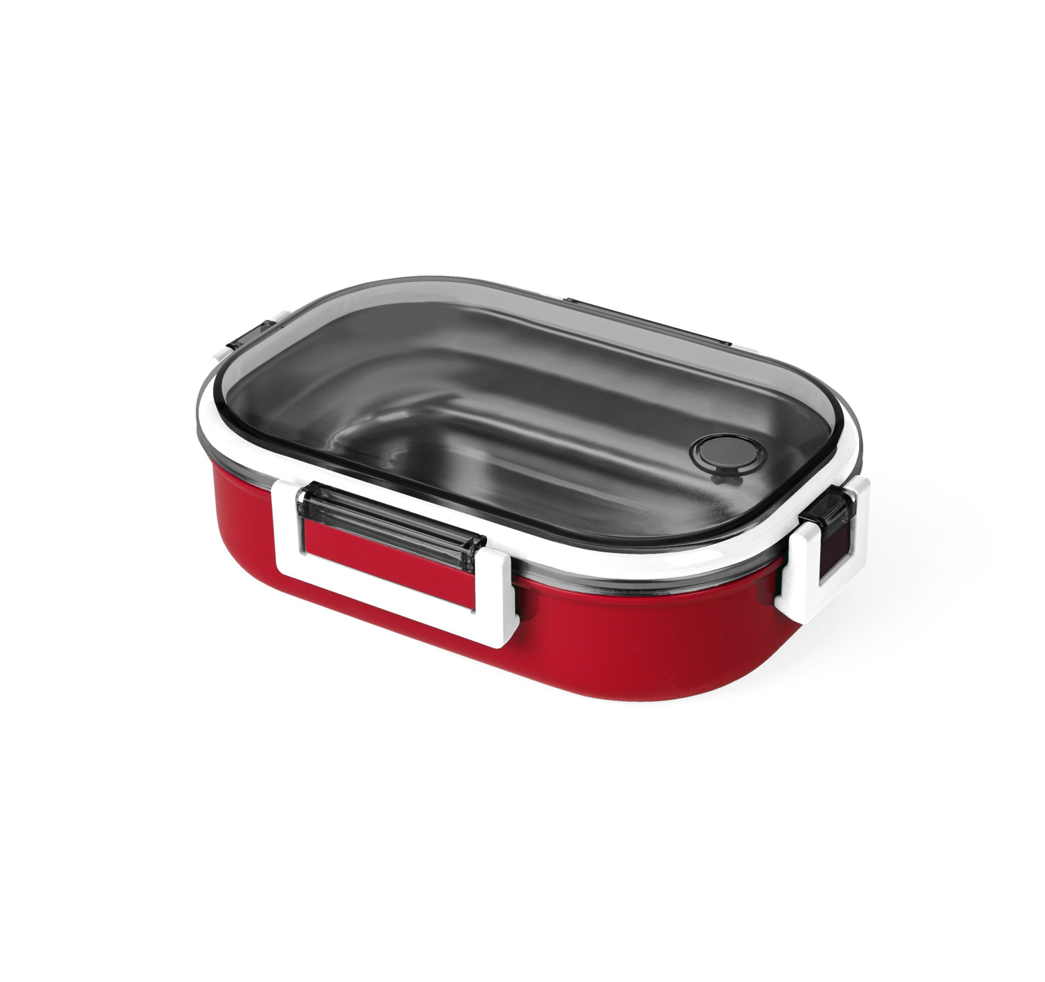 Lunch Box Break. It has a transparent lid that closes hermetically. The volume is 710 ml. Made of high-quality stainless steel in a gift cardboard box.