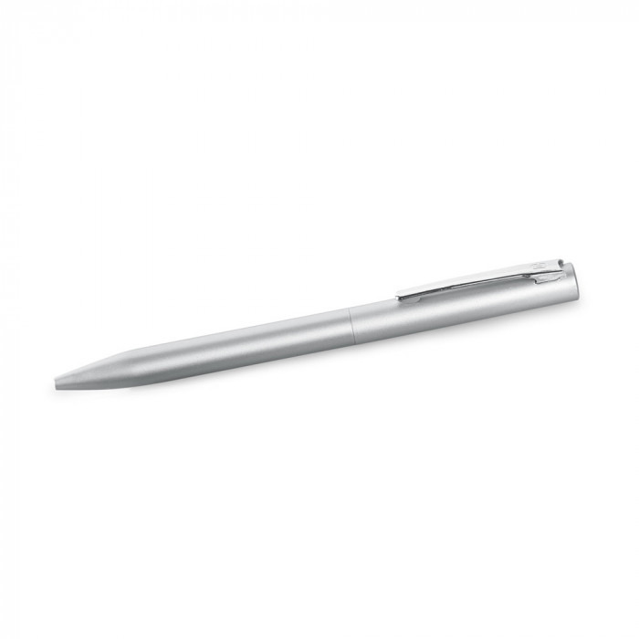 Aluminum ballpoint pen with iron clasp and swivel mechanism. The ink color is blue. Handle size: ø10 x 138 mm. The pen is packed in a plastic bag. Branding method - laser engraving. Print field: 40 x 5 mm.
