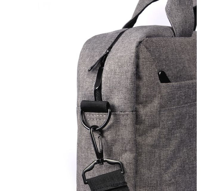 15" laptop bag Main compartment, soft seal laptop compartment, one internal zip pocket and two external zip pockets