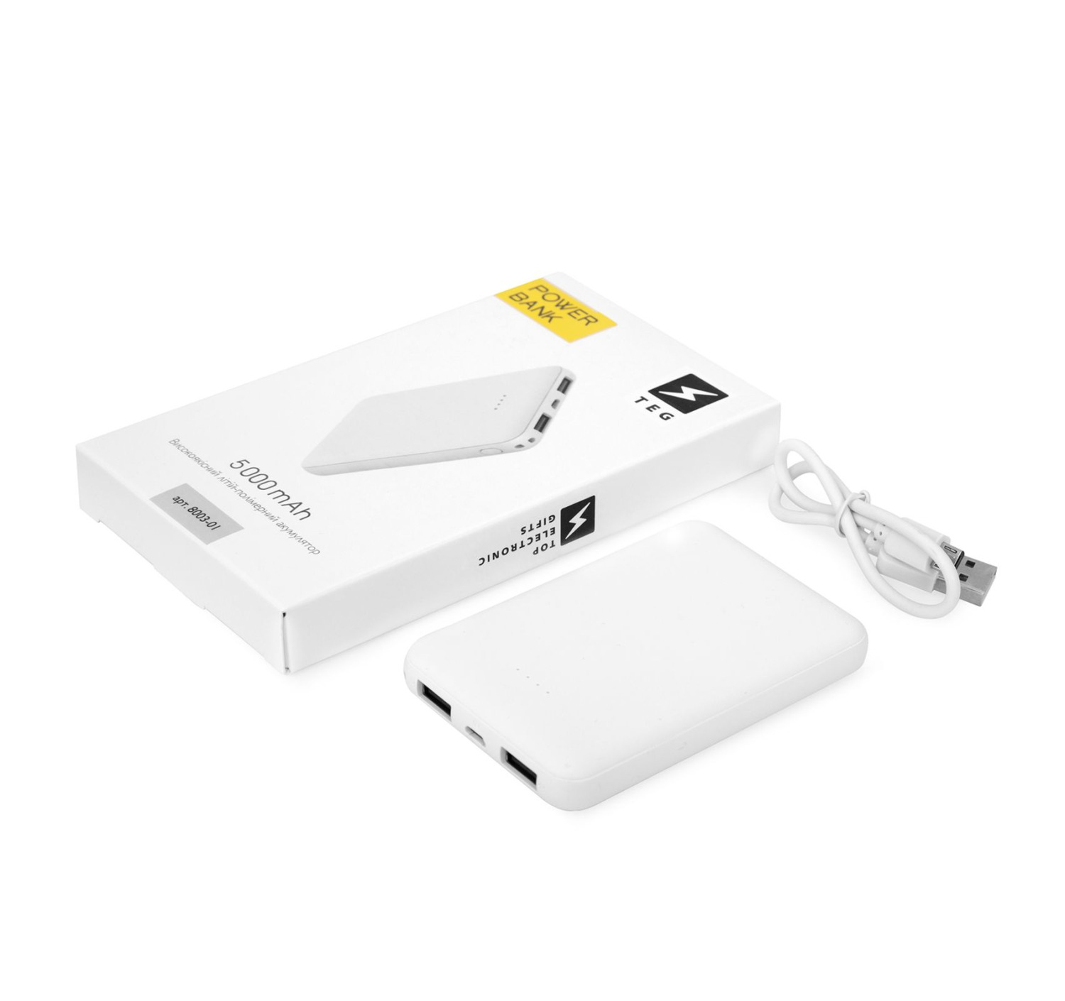 Capacity 5000 mAh, size 94X62X13 mm, weight 125 g, polymer lithium battery, plastic case.