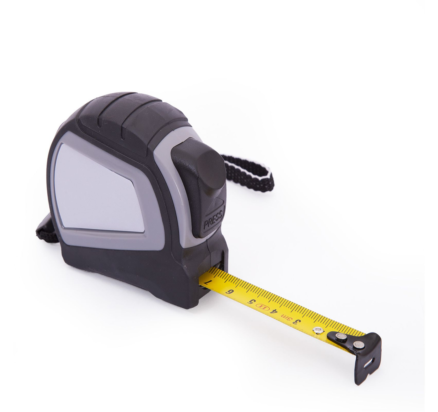 Рулетка строительная 3 метра. Устойчивый прорезиненный корпус, металлическая лента. Ширина холста мерной ленты 16 мм. Модель с автоматическим фиксатором, держатель клипса для ремня, шнурок для удобного держания.