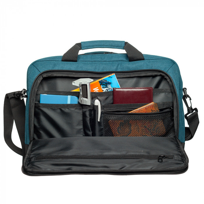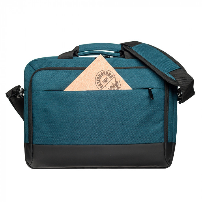 Сумка для ноутбука с диаметром экрана 15''. Основное отделение разделено на две части: для ноутбука и различных аксессуаров, документов формата А4.