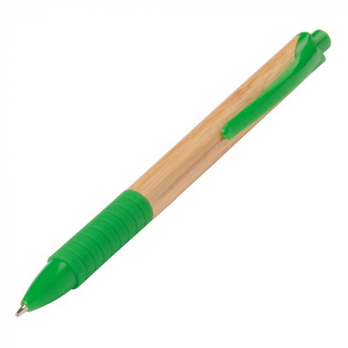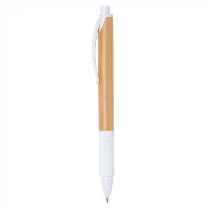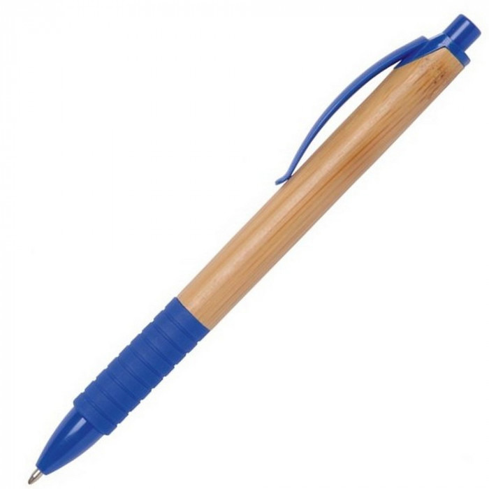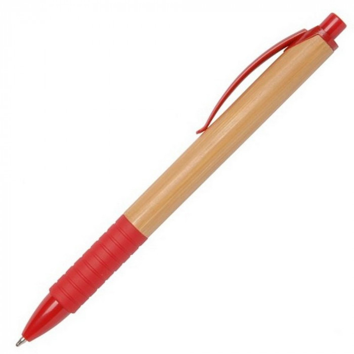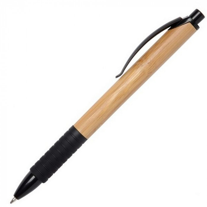 Кулькова ручка з елегантним корпусом з бамбука та гумовим грипом. Матеріали: пластик, бамбук. Механізм – кнопковий.