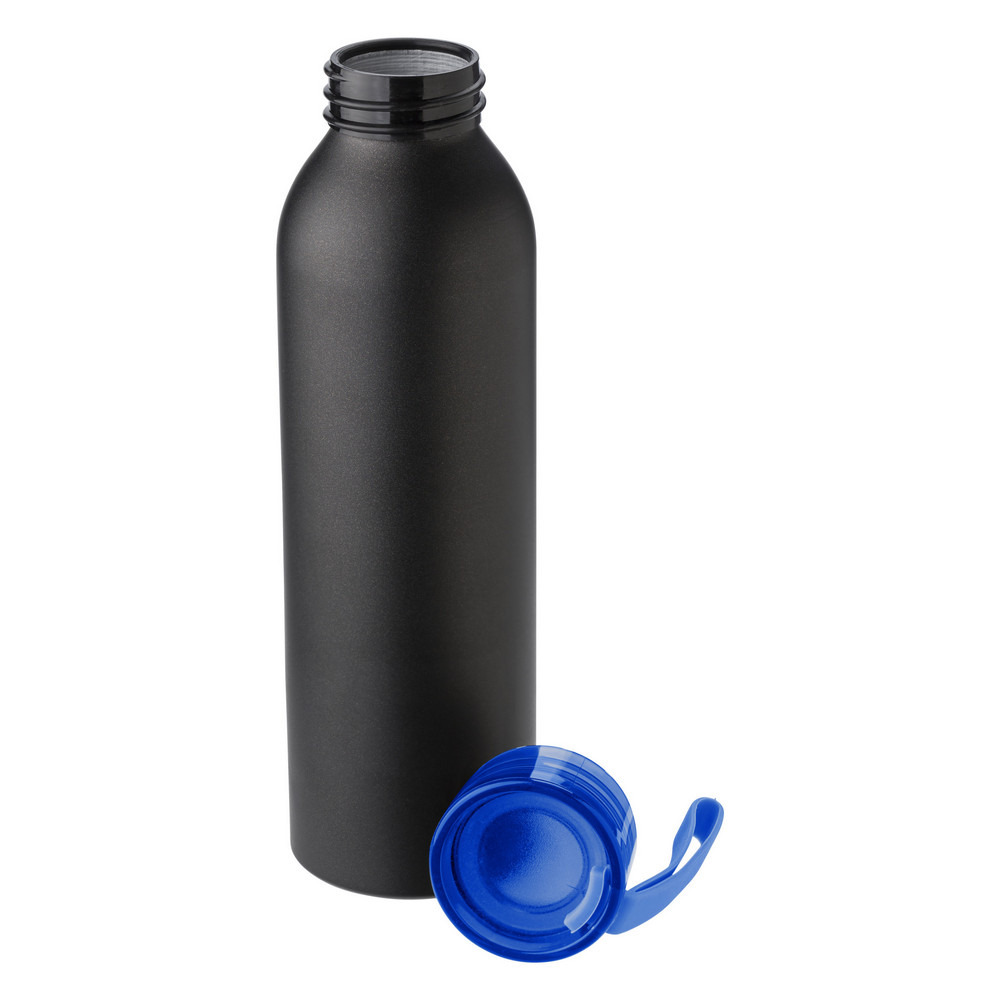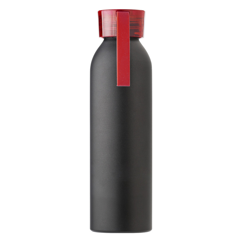 Пляшка в матовому алюмінієвому корпусі. Зручний аксесуар для спорту і відпочинку. Пляшка оснащена прозорою пластиковою (PS) кришкою та силіконовою стрічкою для зручності перенесення.