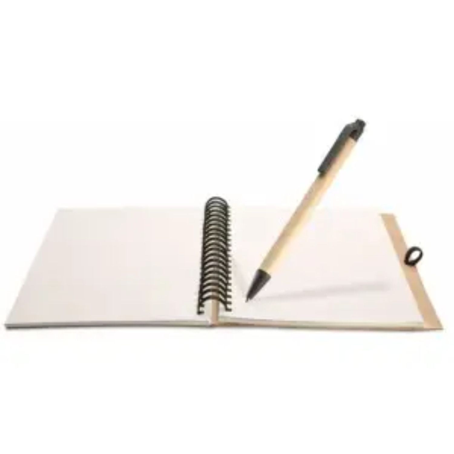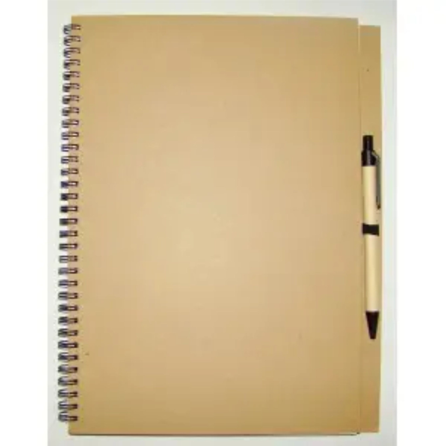 Еко-блокнот А4 з кульковою авторучкою, на спіралі збоку, обкладинка біоматеріал