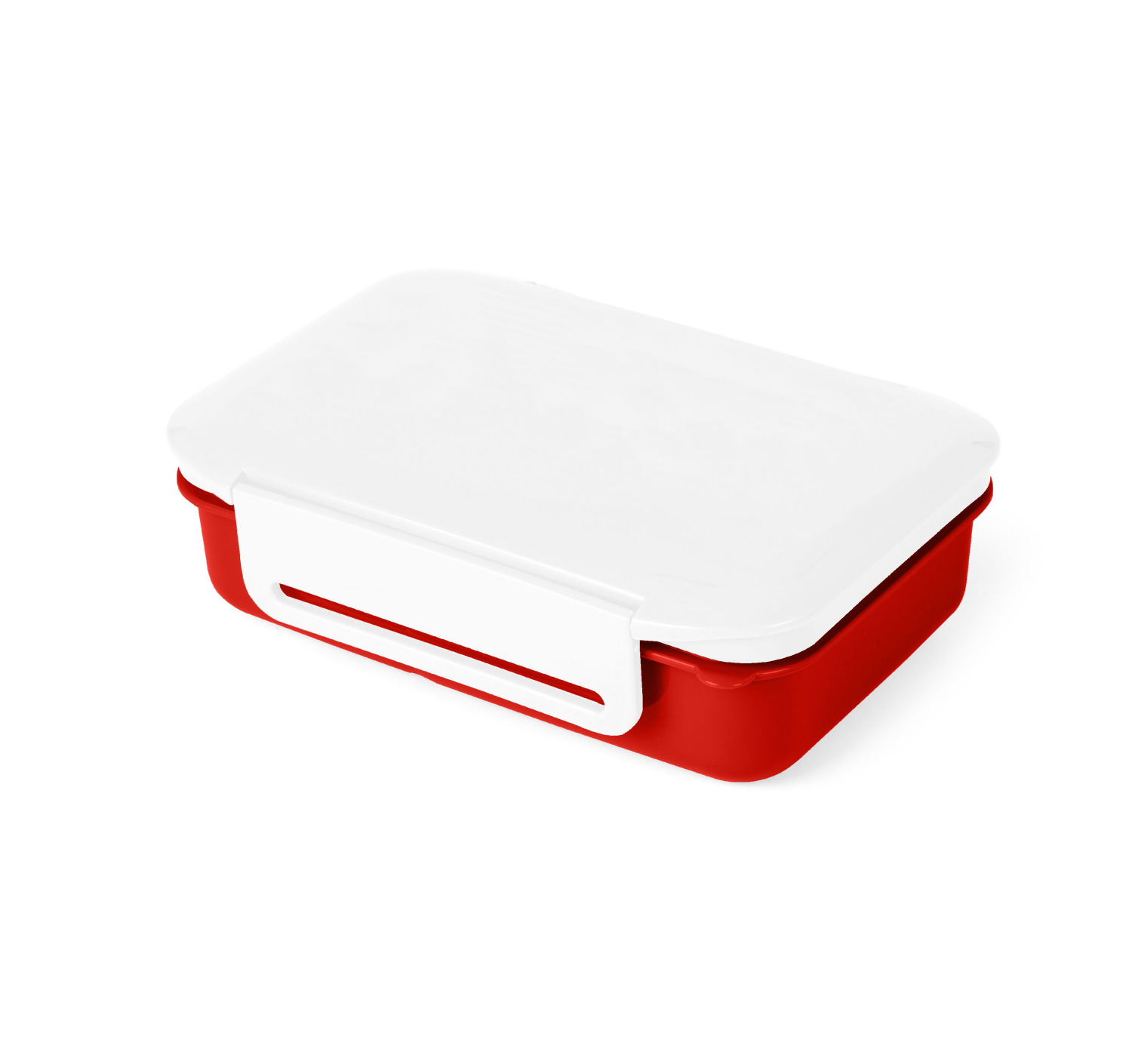 Ланчбокс з харчового поліпропилену (BPA FREE) , на кришці силіконова резинка для щільного закривання. Обьем 950 мл., розмір 208Х146Х63 мм. Можна використовувати в микрохвильовій печі (крім режиму гриль) та посудомийній машині.