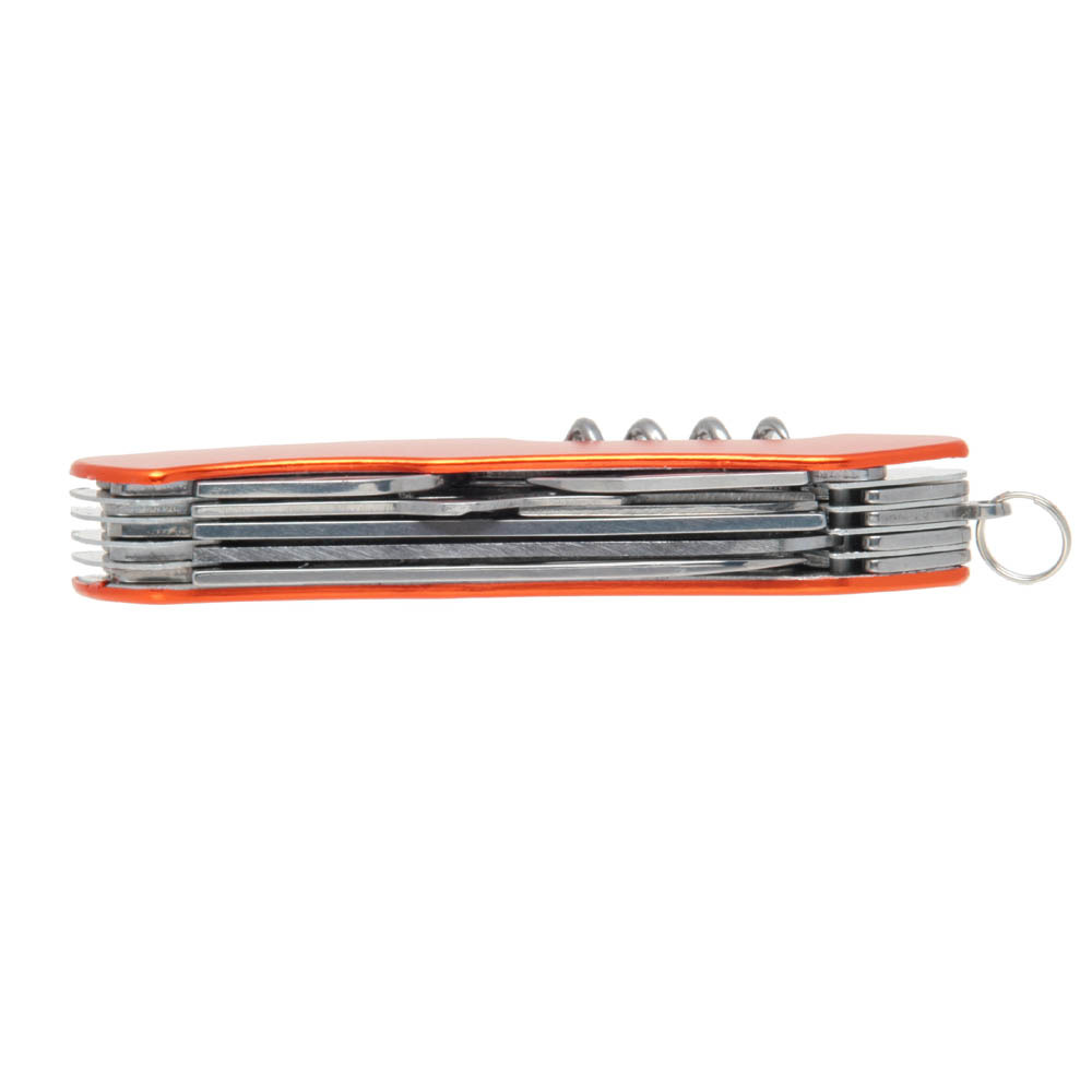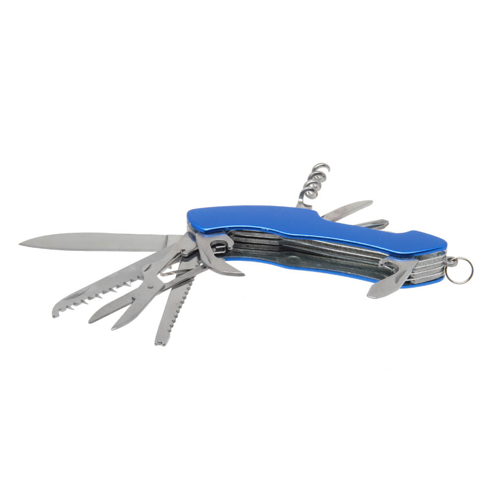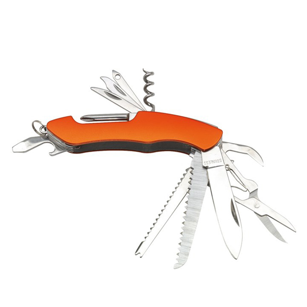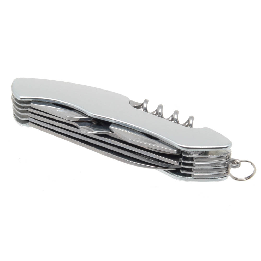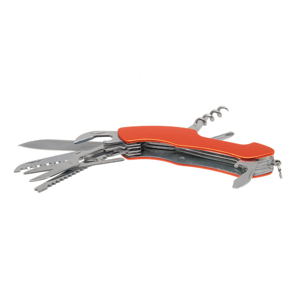 Компактний багатофункціональний інструмент, який поєднує 11 інструментів. Мультитул включає: ножиці, ніж, одну велику та одну маленьку пилку, відкривачки для консервів та пляшок, штопор, пилочку для нігтів, шило, дірокол та викрутку.