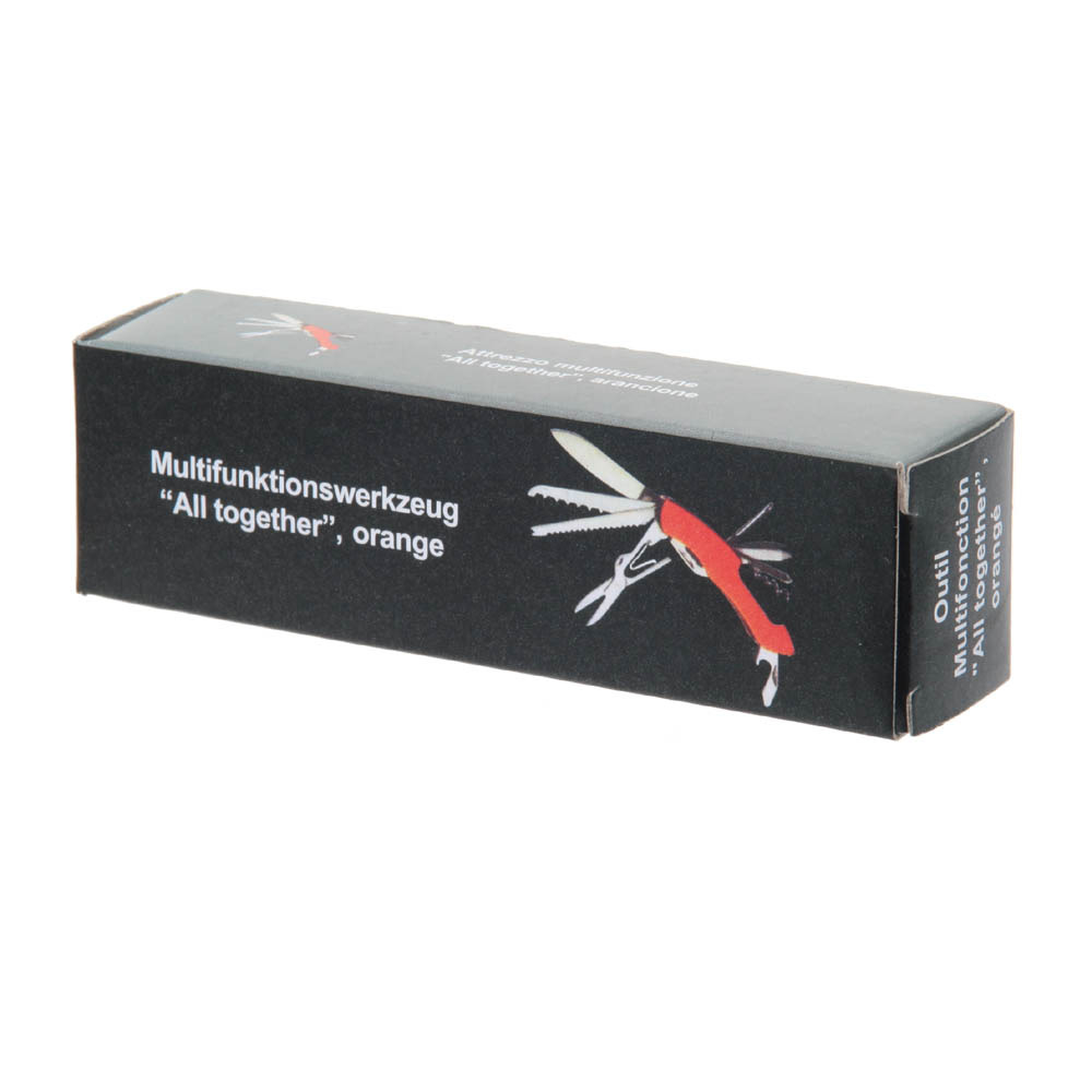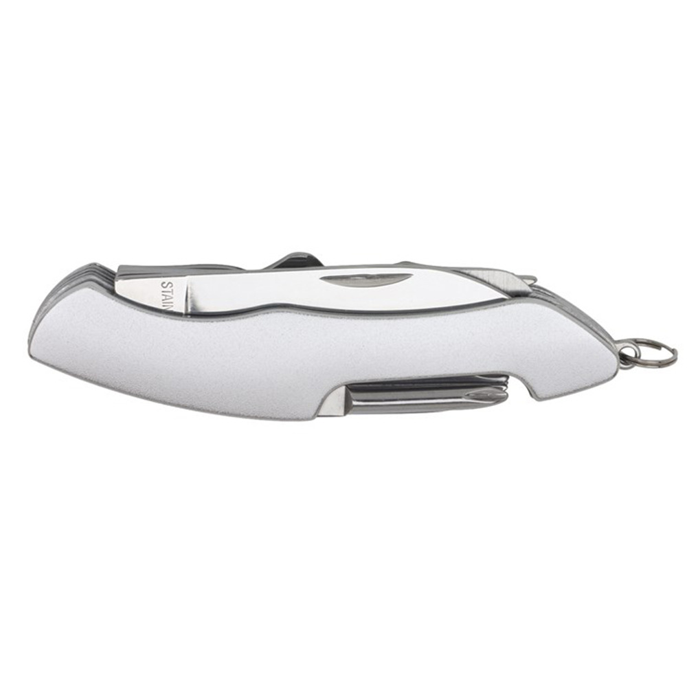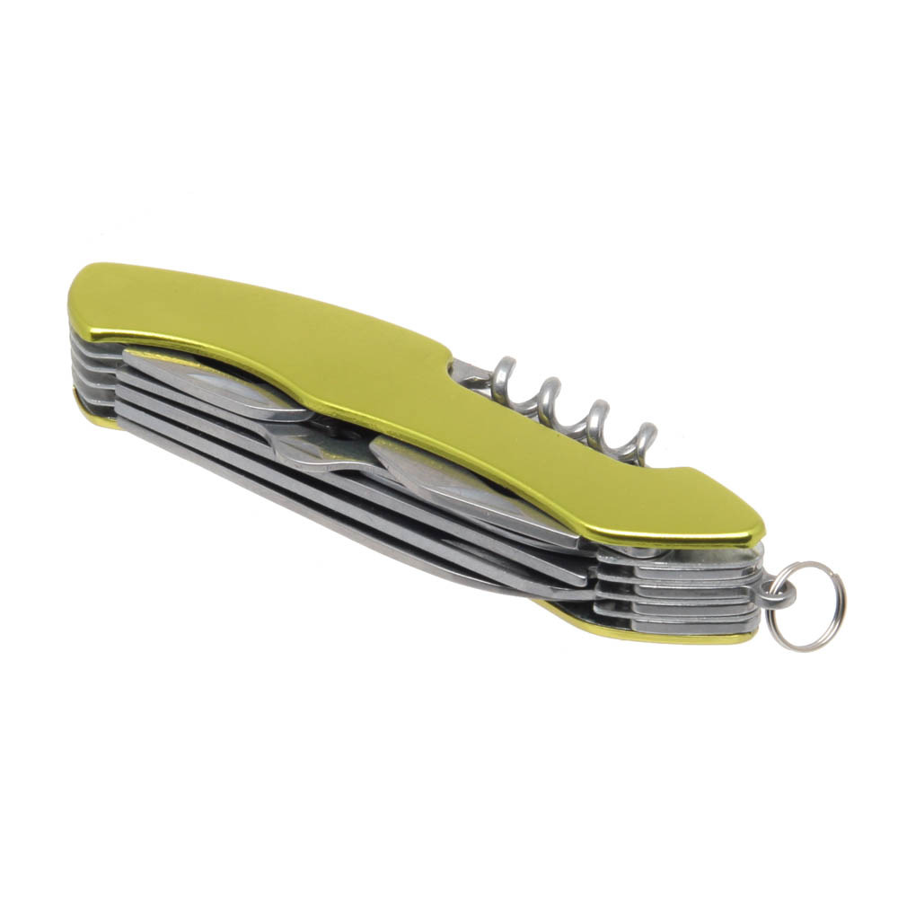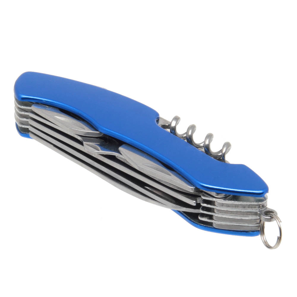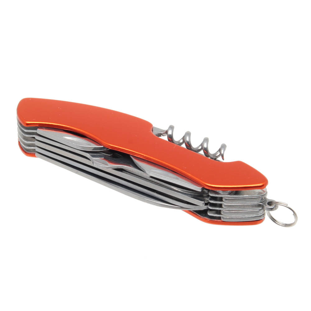 Компактний багатофункціональний інструмент, який поєднує 11 інструментів. Мультитул включає: ножиці, ніж, одну велику та одну маленьку пилку, відкривачки для консервів та пляшок, штопор, пилочку для нігтів, шило, дірокол та викрутку.