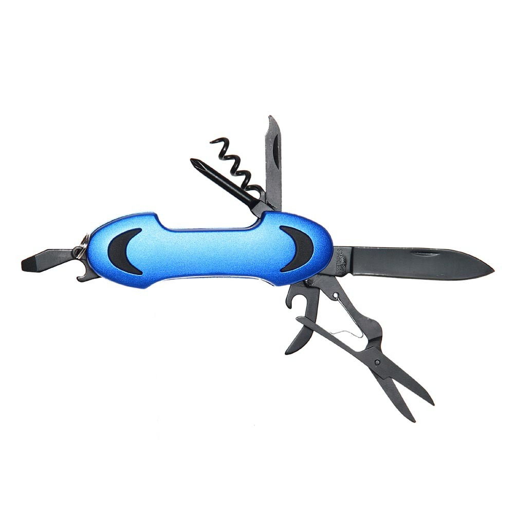 Ніж має 7 функцій: ніж, ножиці, відкривачка для пляшок, відкривачка для консервних банок, штопор, напилок, хрестоподібна викрутка. Нанесення логотипу можливе з обох боків виробу.
