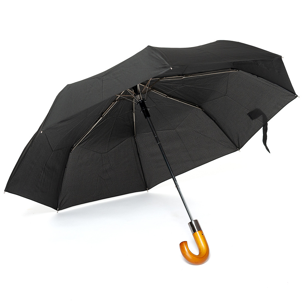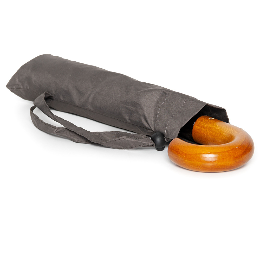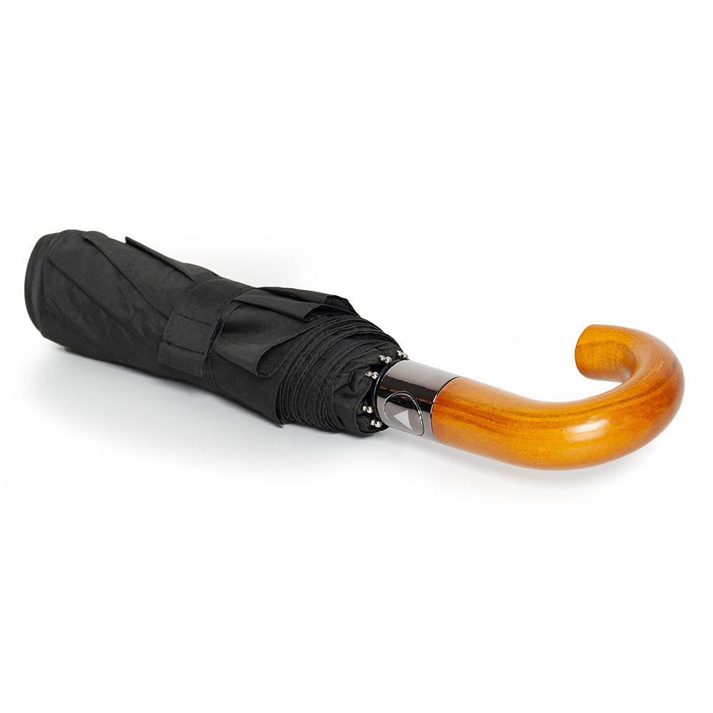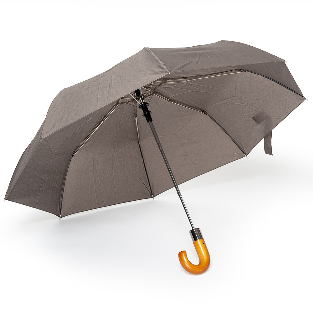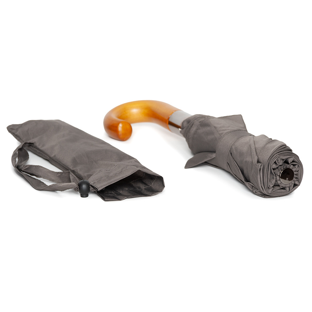 Купол виготовлений із поліестеру 190T. Основа виготовлена з нікельованої сталі. Вигнута дерев'яна ручка.
