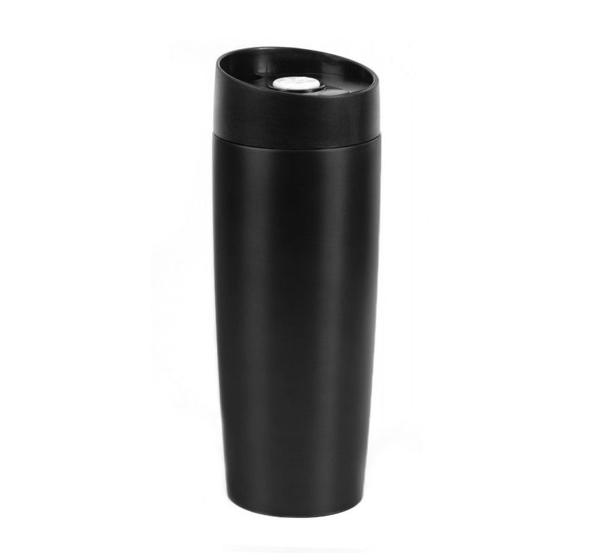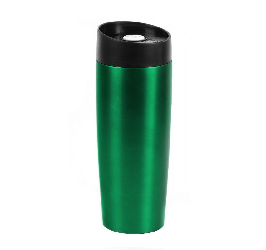 Вакуумна термокружка з нержавіючої сталі, з обемом 400 мл. , вкрита матовою кольоровою емаллю, кришка-непроливайка з клапаном . Кришку можна мити в посудомийній машині. Корпус мити тільки вручну щоб не пошкодити кольорове покриття. Підтримує температуру до шести годин. Упакована в індивідуальну чорну коробку та поліетиленовий пакет.