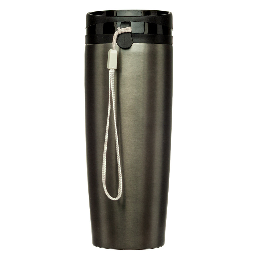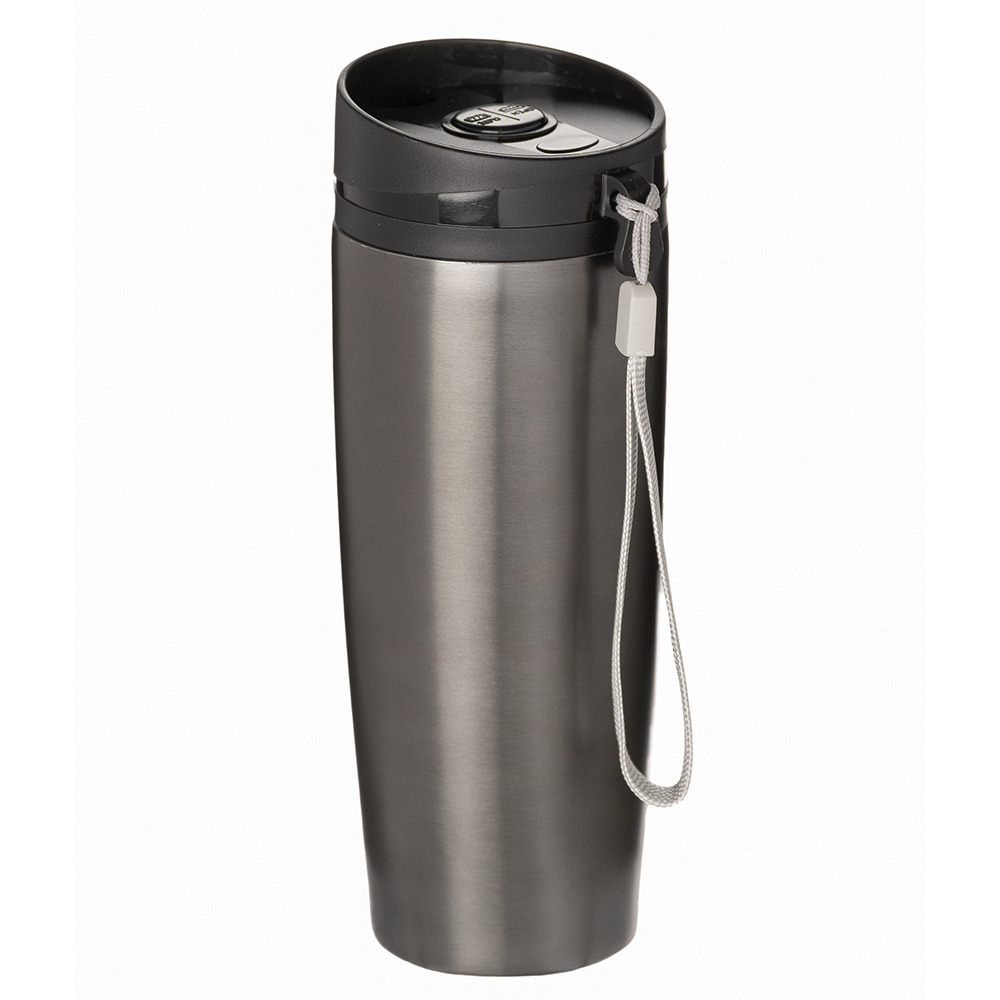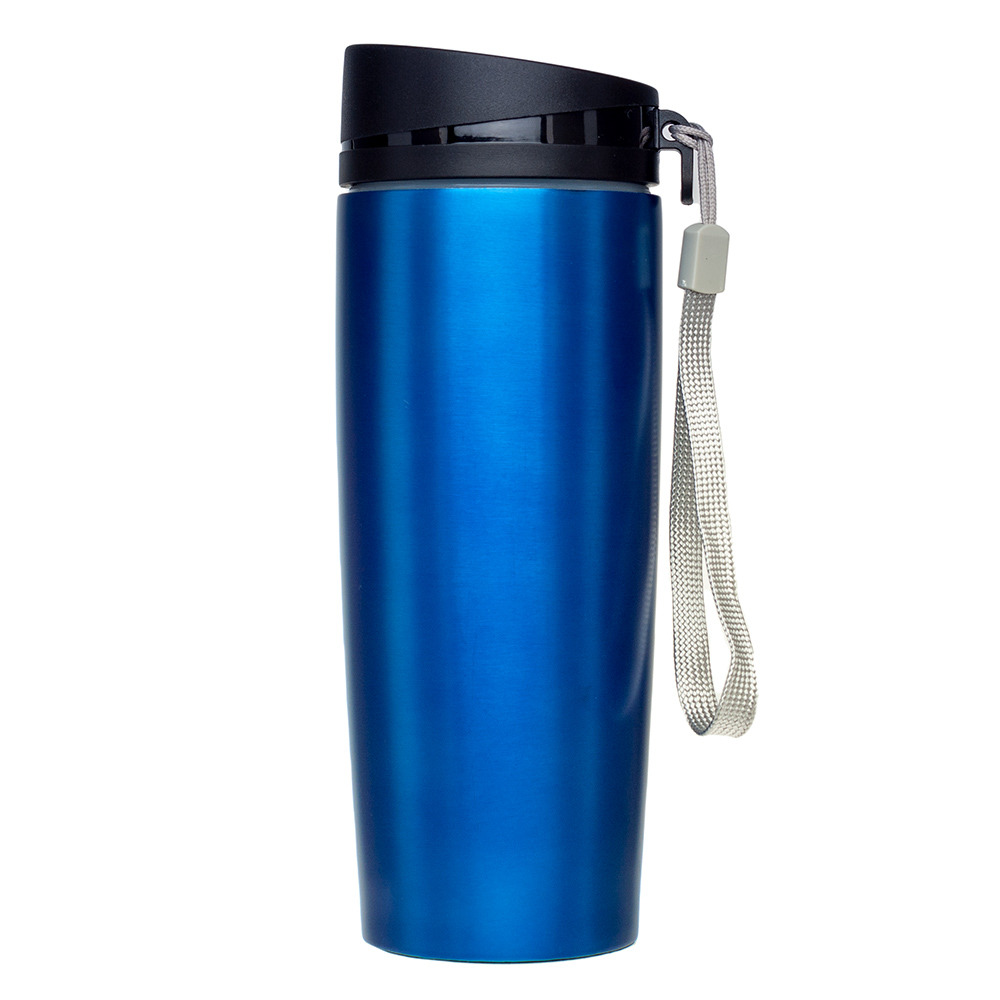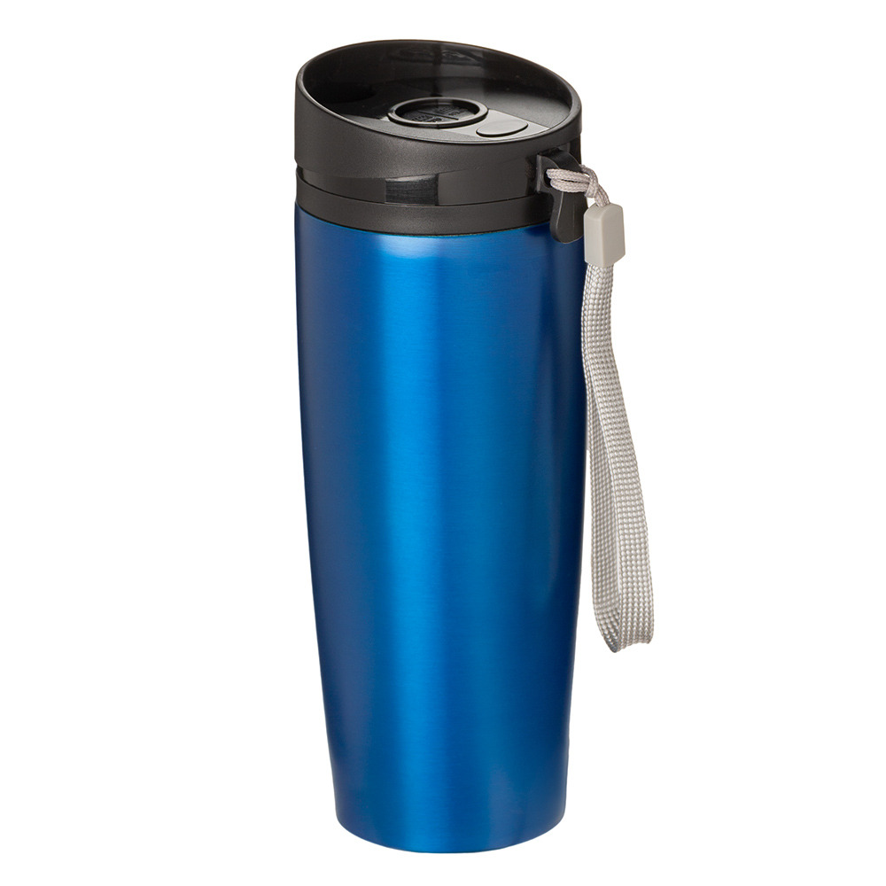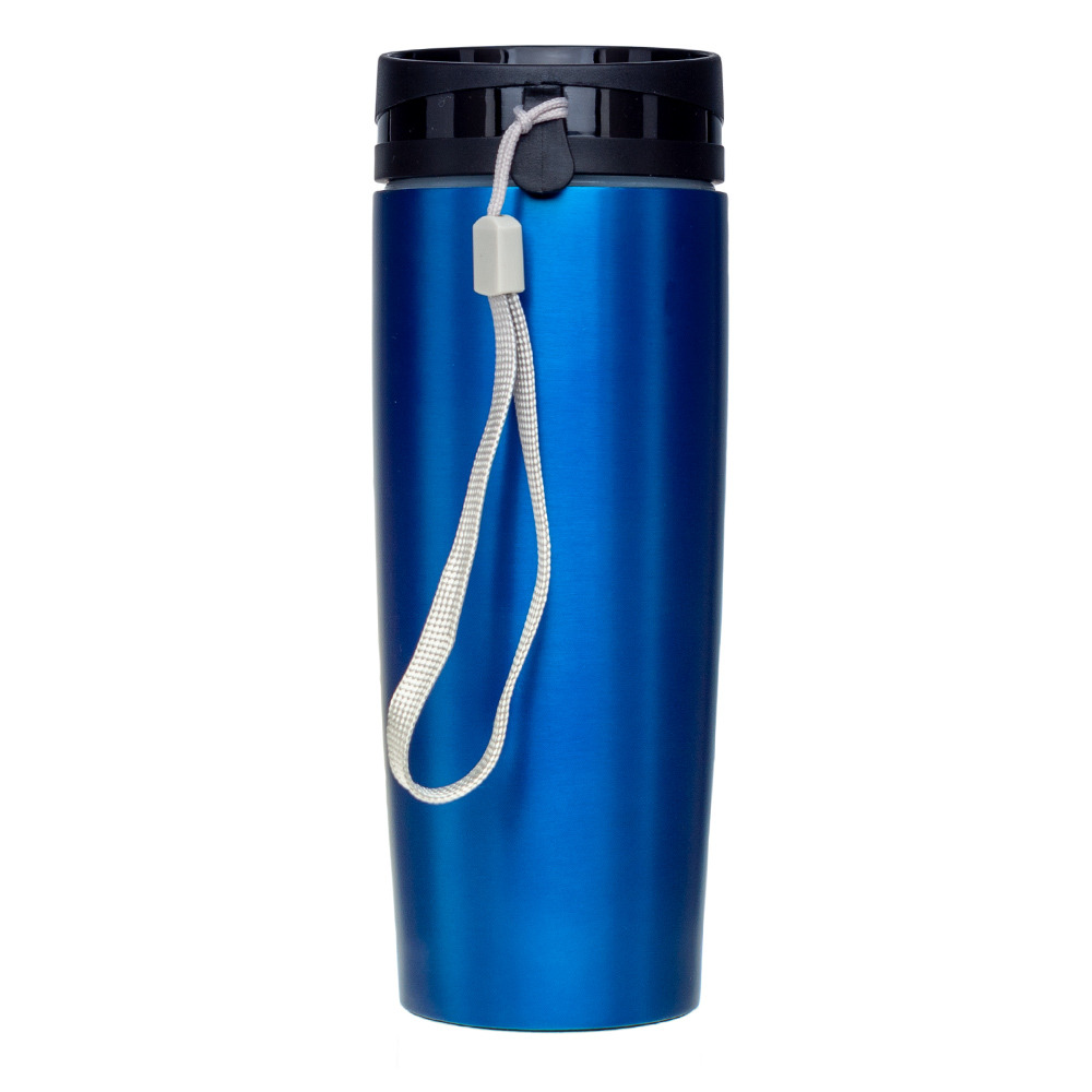 Надійна пластикова кришка з кнопкою OPEN / CLOSE і отвором для пиття, і ремінець на руку.