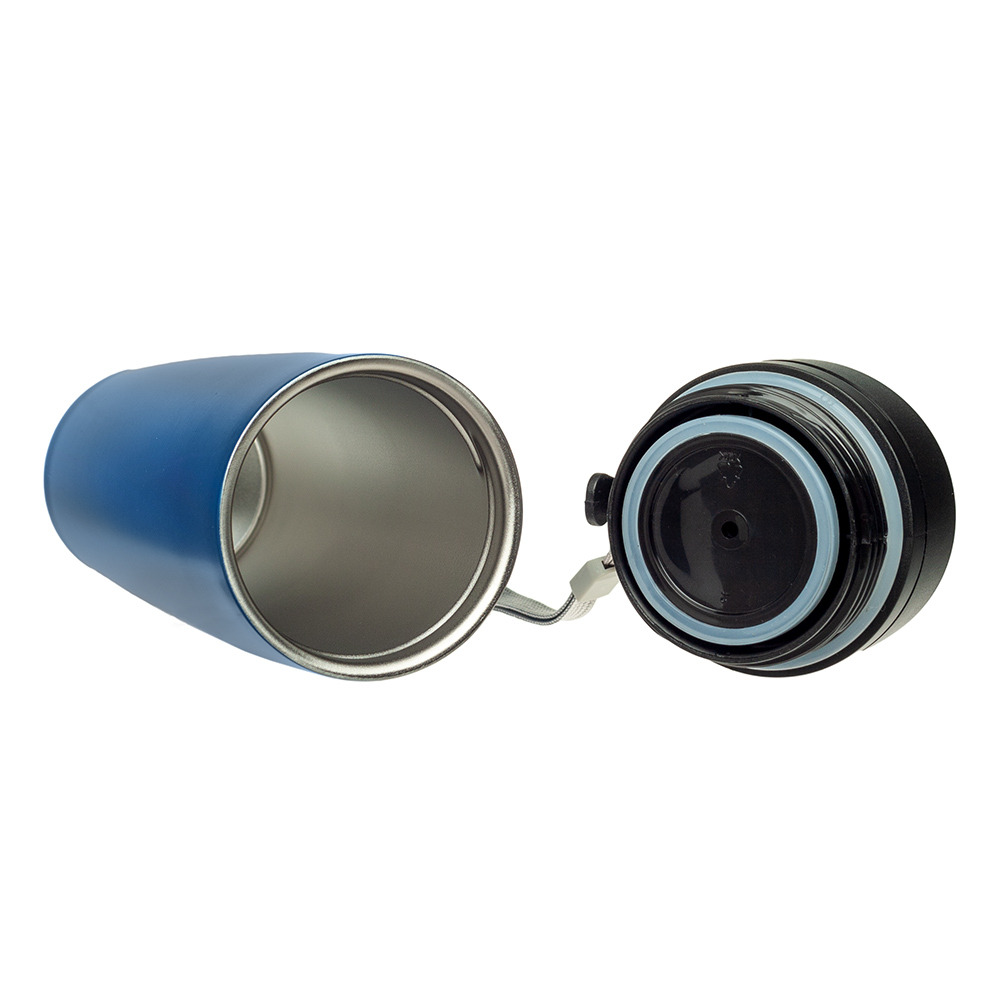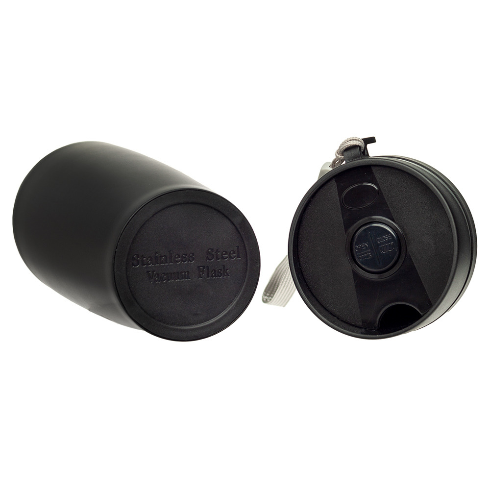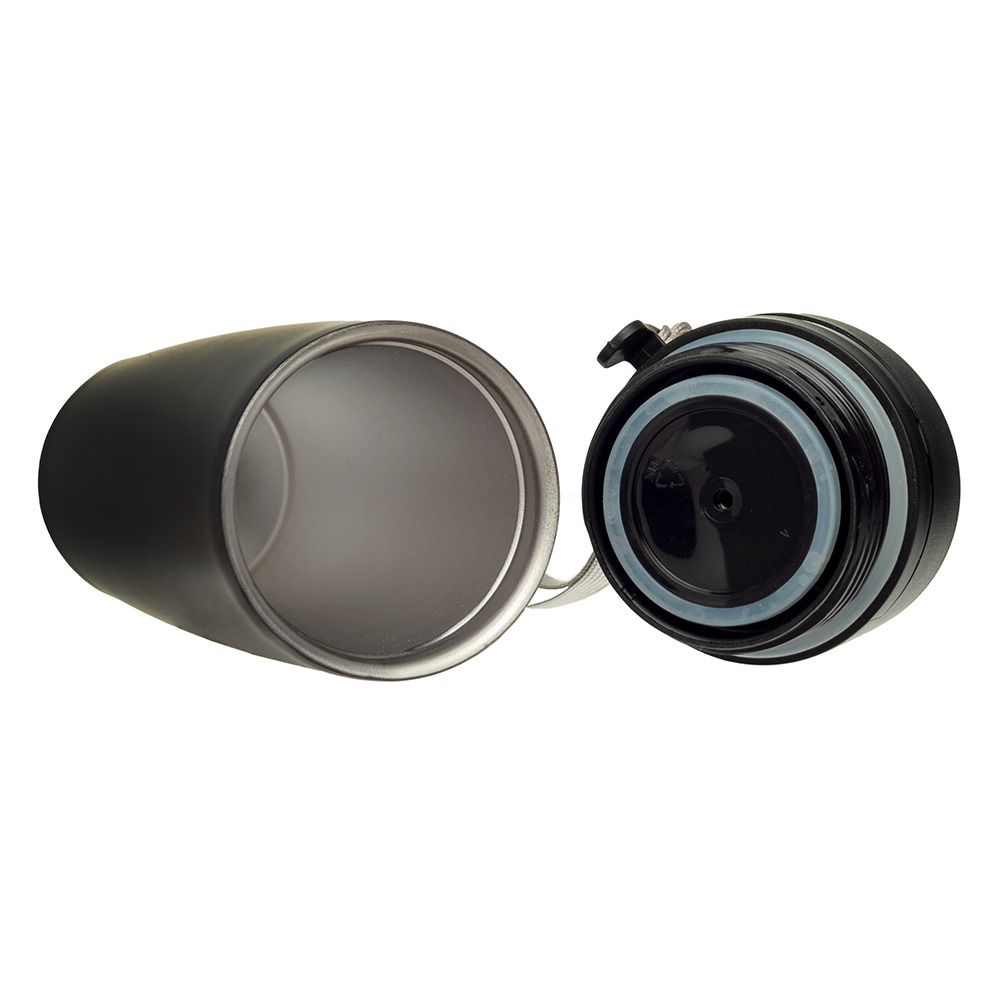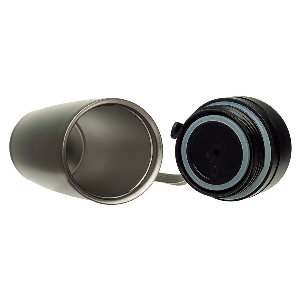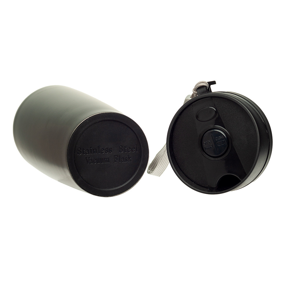 Термокружка з подвійними стінками. Всередині і зовні виготовлена з нержавіючої сталі. Зберігає температуру напою.