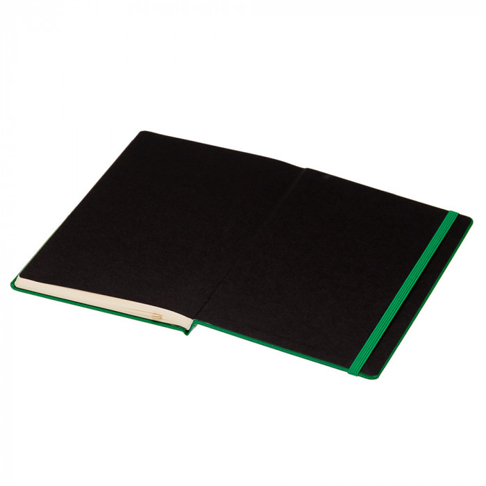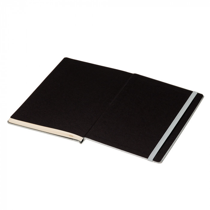 Обкладинка із закругленими кутами має резинку-фіксатор. Форзаци – чорного кольору.