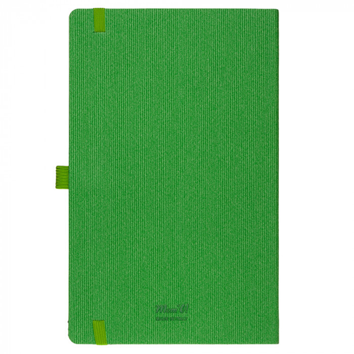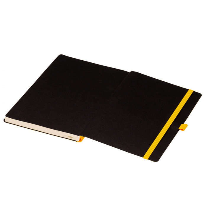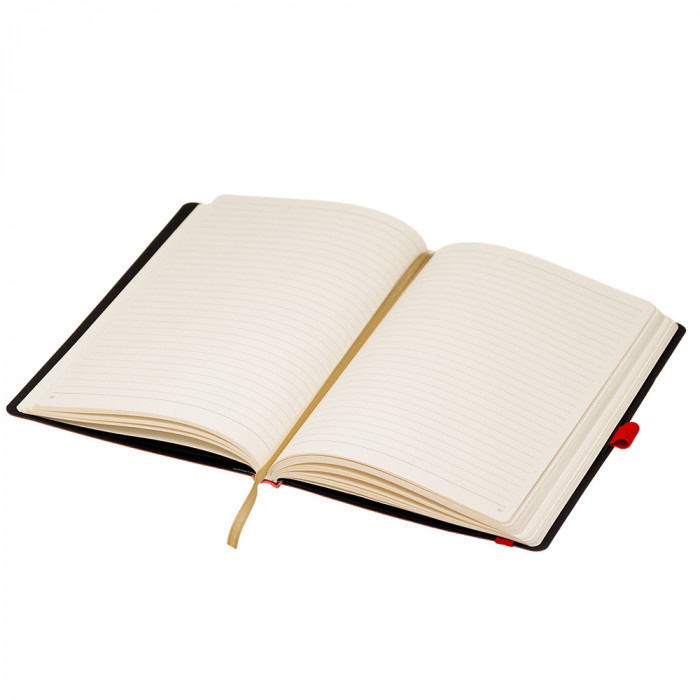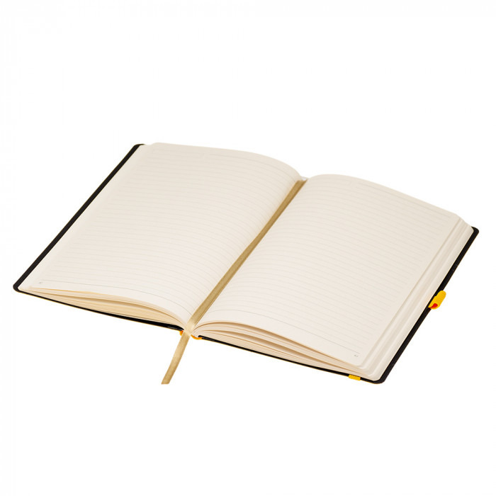 Обкладинка із закругленими кутами має резинку-фіксатор та резинку-тримач для ручки. Форзаци – чорного кольору. На кожній сторінці є місце для внесення дати.
