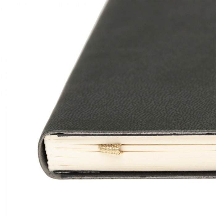 Матова обкладинка має резинку-фіксатор. Форзаци – чорного кольору. На кожній сторінці є місце для внесення дати.