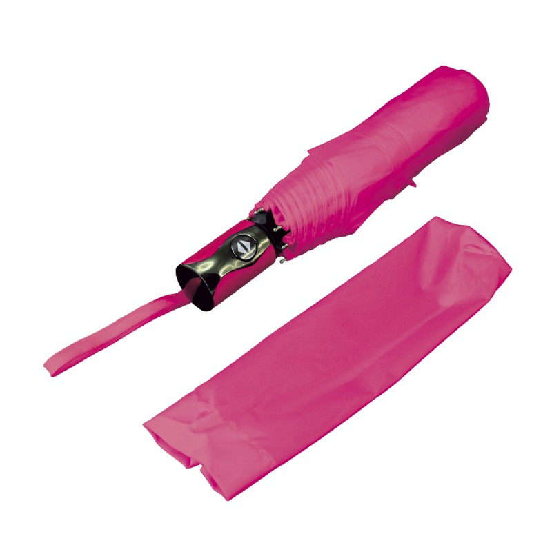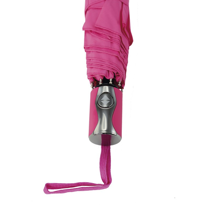 Розкладна автоматична парасолька, з пластиковою ручкою в колір полотна. Діаметр купола: 98 см