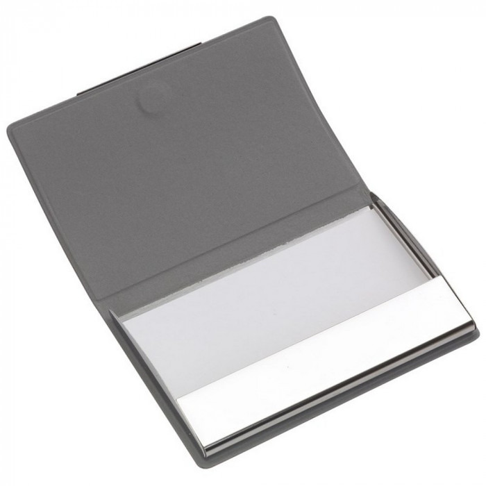 Карманная визитница из искусственной кожи на основе полиуретана. Закрывается на магнит, имеет металлическую пластинку для брендирования.